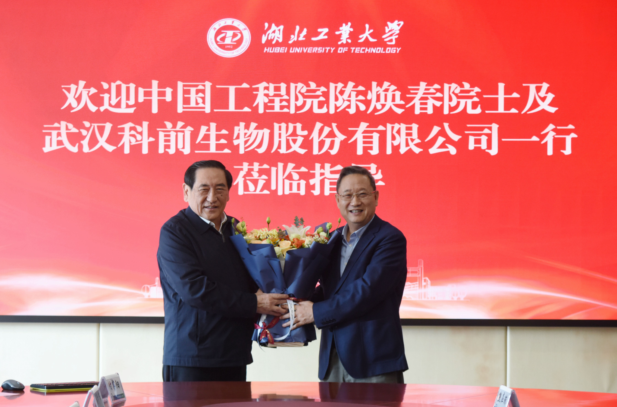 中国工程院院士、华中农业大学教授陈焕春及武汉科前生物股份有限公司一行来访调研。校党委书记彭育园,校党委常委、副校长宋小春,校党委常委、组织部部长桂丽热情接待了陈院士一行。