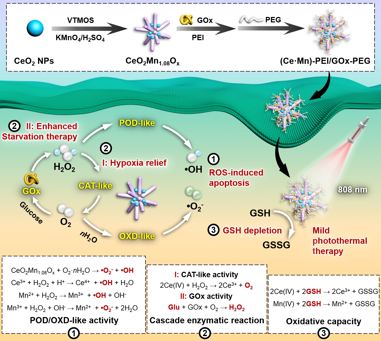 近日,国际顶级期刊《Advanced Functional Materials》(自然指数期刊、中科院一区top、影响因子18.5)以文题“A novel Ce-Mn heterojunction-based multi-enzymatic nanozyme with cancer-specific enzymatic activity and photothermal capacity for efficient tumor combination therapy”在线发表了湖北工业大学生命科学与健康工程学院李草教授团队在纳米酶基抗肿瘤纳米药物领域的最新研究进展.
